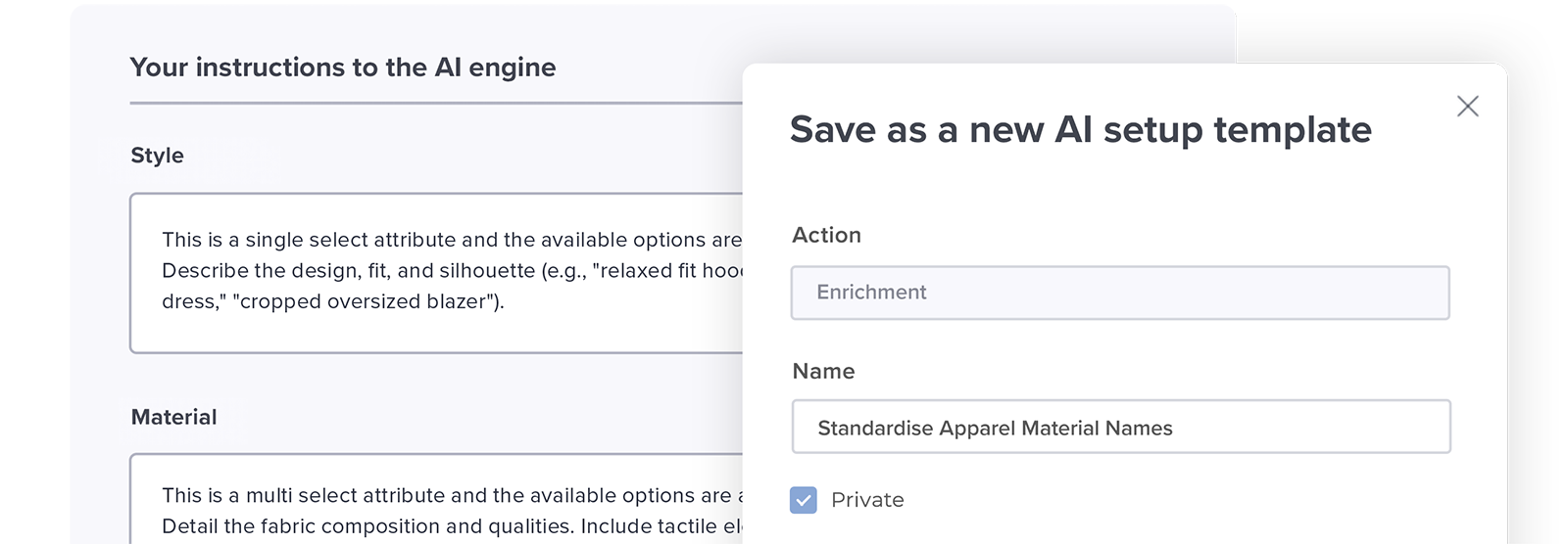 AI Templates standardise how product data is structured and enriched across teams and catalogues.